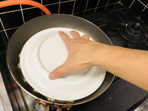 蓋をして待つ。時々のぞいたりして、計5分くらいすると、チリチリ聞こえ始めた。