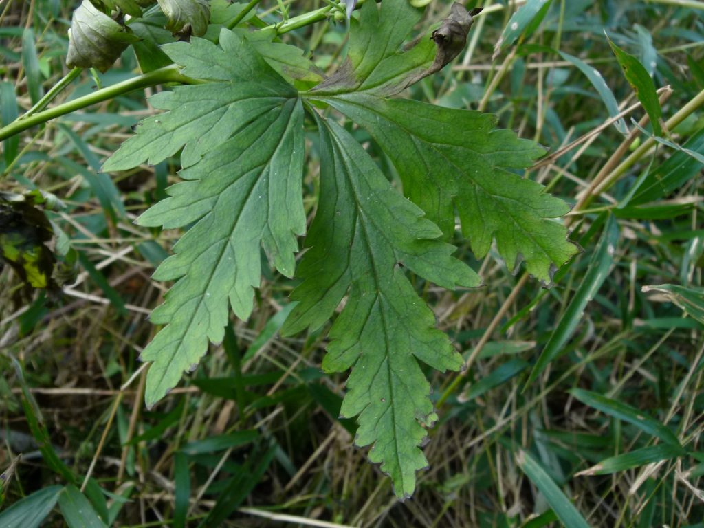 タンナトリカブトの葉も三全裂するが、切れ込みはハナカズラほど深くない。そのため幅が広く、大きさに対して葉の面積が大きいというか、無駄がない印象。