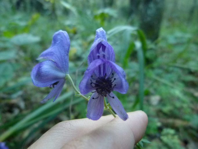 九州特産のハナカズラと、西日本に分布するタンナトリカブト。宮崎県では両種とも観察できる。そうなると気になるのは見分け方。花の形など、かなり似ているので、識別には注意が必要だ。
