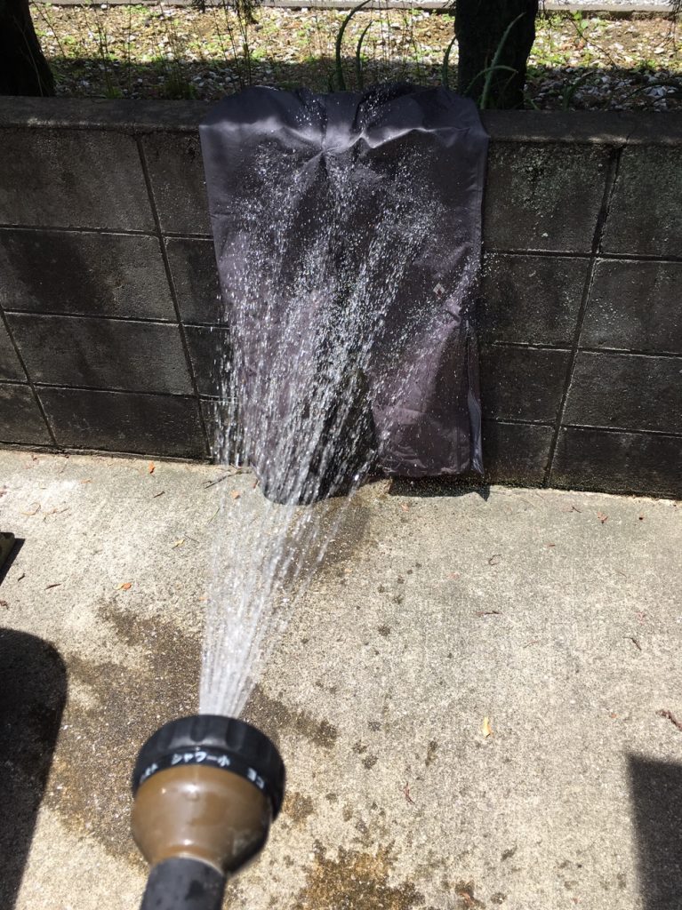 従って、今回はウェア2着を3リットルの水と25mlのニクワックスで撥水加工(規定の4分の1の使用量)