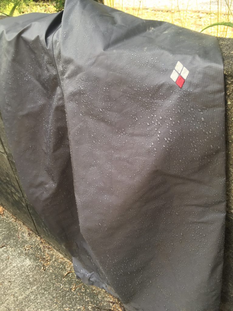 討死。見よこのあわれな濡れ鼠を。水が浸み込んでしまっている。これでは透湿機能まで損なわれてしまう。